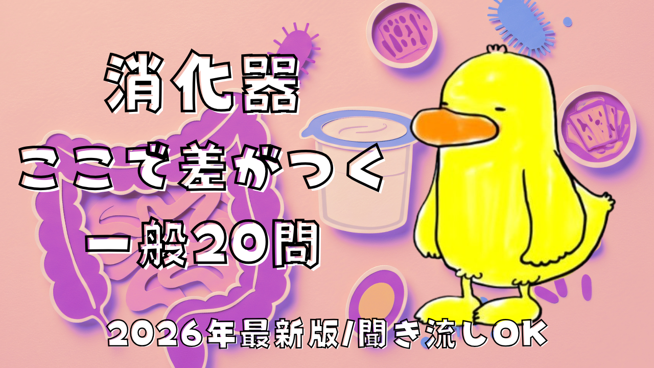 まずはYouTubeの聞き流し動画はこちら:【2026年最新版】消化器で差がつくのはここ|看護師国家試験 一般20問・一問一答