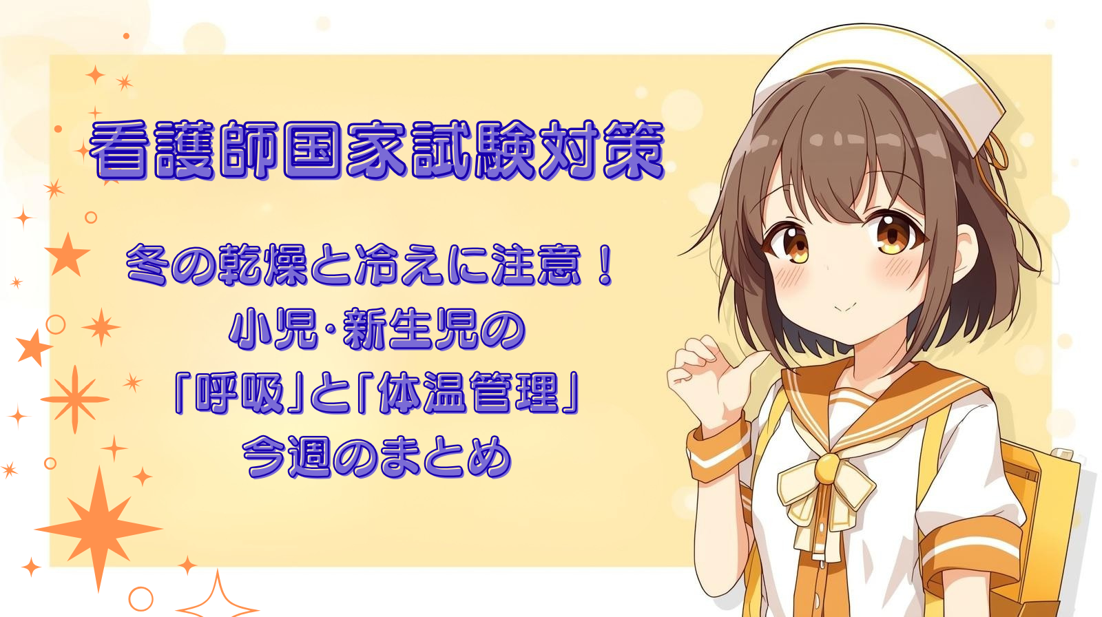 冬は暖房で室内が乾燥し、気づかないうちに冷えやすくもなります。今週は「呼吸」と「体温管理」をコツコツ分解してきました。今日は1つの症例で、判断と優先順位をまとめて確認します。 看護の落とし穴:冬は家族がバタつきやすく、“いつも通りできている前提”で聞き取りが浅くなると支援の糸口を逃しやすいです。