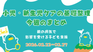 今日の一問 小児・新生児ケアの基礎整理:年度末のこころに寄り添う:親の病気で影響を受ける子ども支援|今週のまとめ(症例+5問) 2月末は卒園・卒業や進級準備で、普段より“がんばる時間”が増える季節です。親の治療が続く家庭では、子どもの不安が表に出たり、逆に見えづらくなったりします。症例で統合して確認します。🩺 症例父親が進行が... 2026.02.28 今日の一問